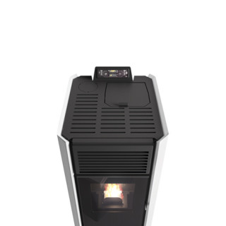 Teplovzdušné kachle na pelety Adele s majolikovým povrchom a núteným vetraním. Zásobník 18,5 kg, 5 výkonov, 6-jazyčné menu, ľahká údržba a bezpečnostné termostaty.