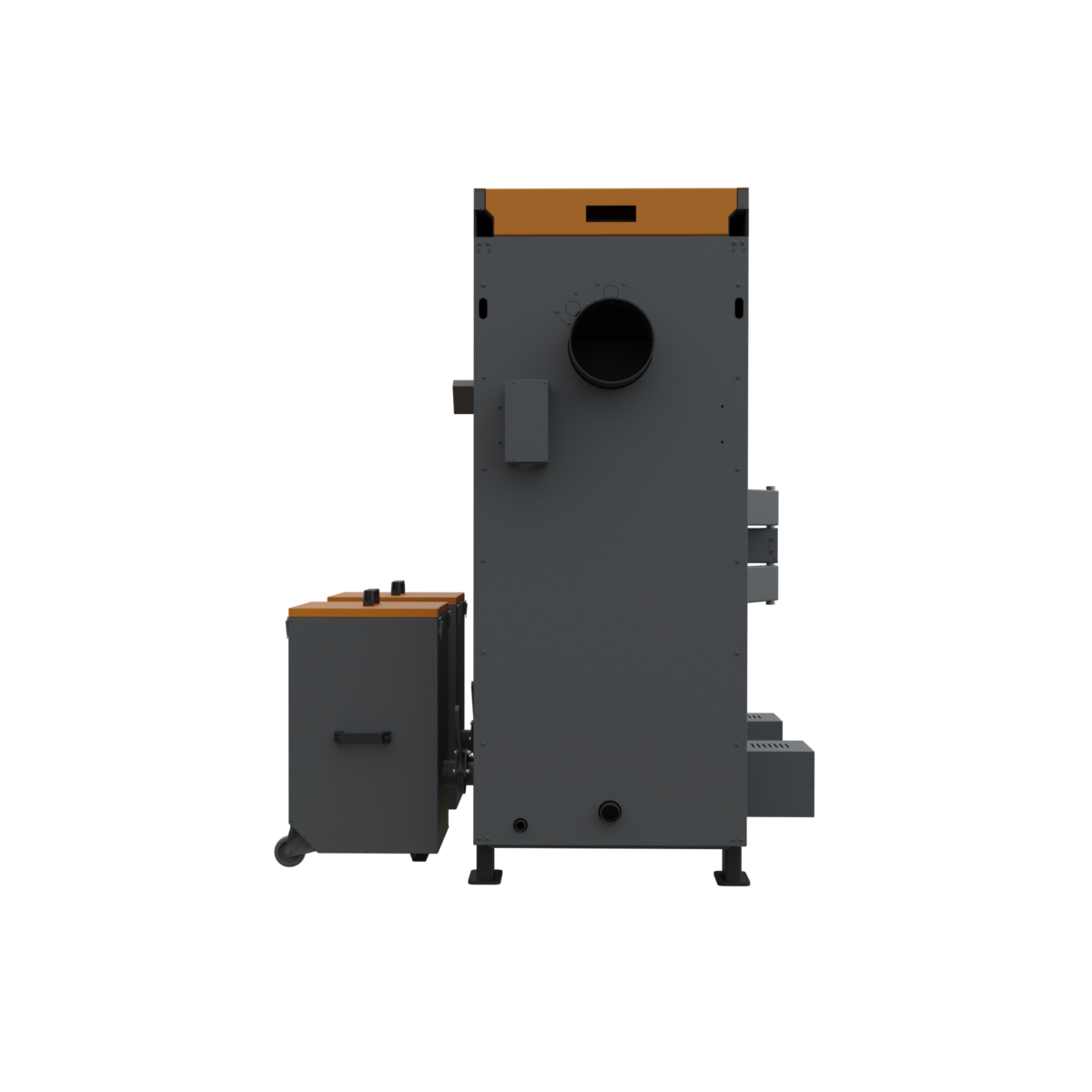 - Ľavo-pravé prevedenie - otváranie dvierok, umiestnenie skládky popola a umiestnenie násypky pre kotol, vďaka čomu možno dispozíciu zostavy prispôsobiť možnostiam a priestoru v kotolni.