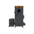 - Ľahká údržba a čistenie horáka - prebieha automaticky kompresorom. Nečistoty padajú do popolníka kotla, ktorý čistí automatické odpopolnenie pomocou šnekového podávača. Ten natlačí všetok popol napadaný do popolníkovej časti kotla do špeciálneho kontajnera.