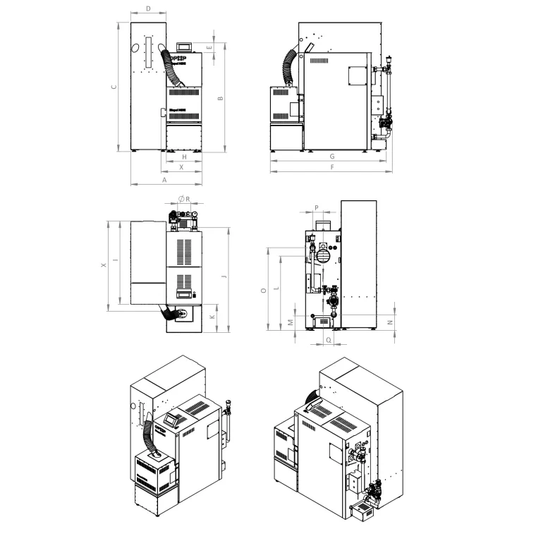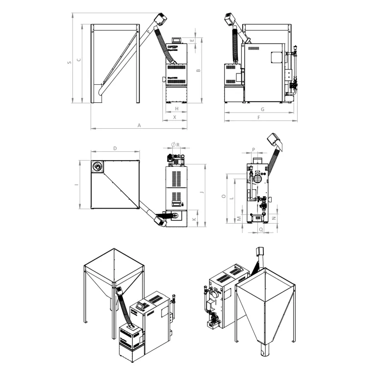 | S Celková výška kotla vrátane podávača (flexibilné rozmery) | mm | 1500 | ||||