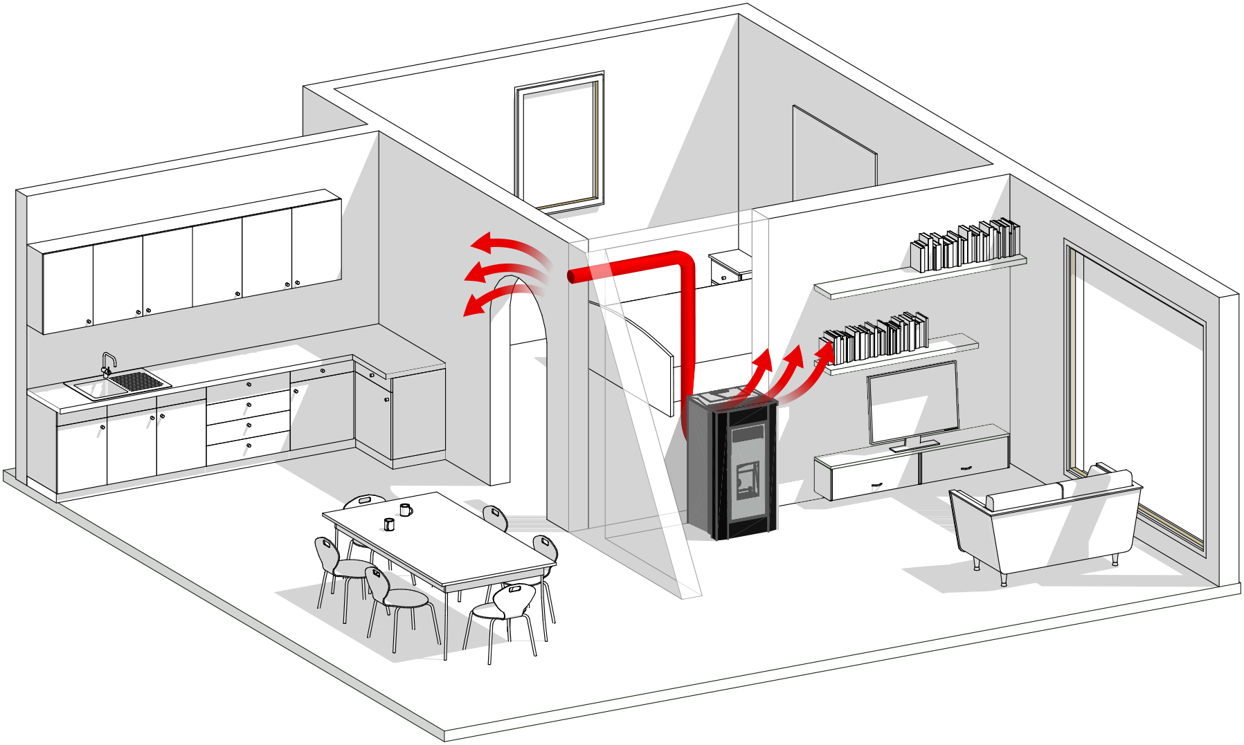 Prirodzená konvekcia je typ prúdenia, ktorý spôsobuje zmeny okolitej teploty, čím vytvára pohyb vzduchu, ktorý zhromažďuje studený vzduch a ohrieva ho bez použitia mechanických komponentov na ventiláciu. Homogénne rozloženie a maximálna tichosť zaručujú najvyšší komfort.